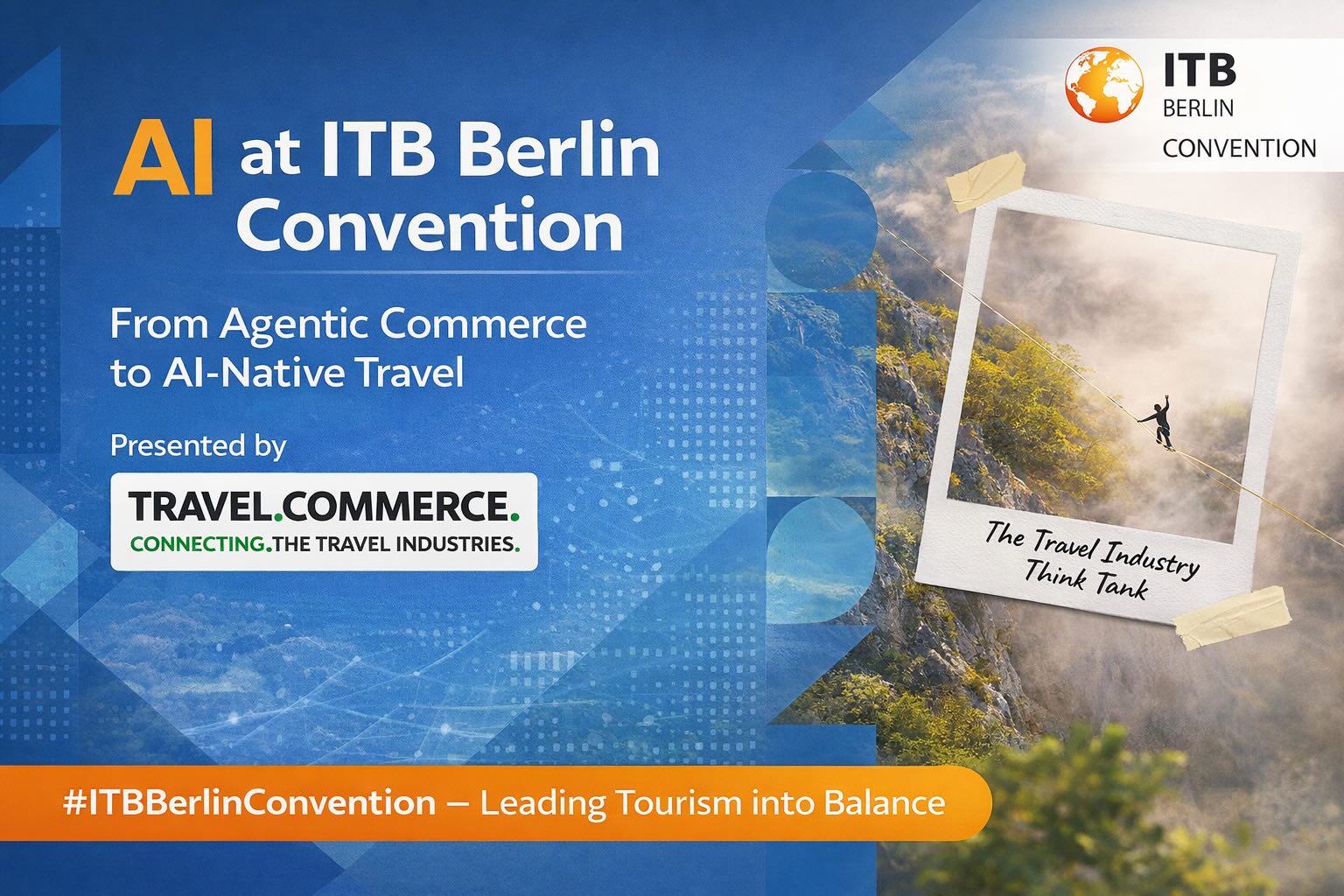 Wie bringen wir Technologie, Innovation und Verantwortung in eine neue Balance? Auf der ITB Berlin Convention liefern wir die Antworten. Travel.Commerce. präsentiert den AI Track und den Travel Tech Track auf der eTravel Stage.